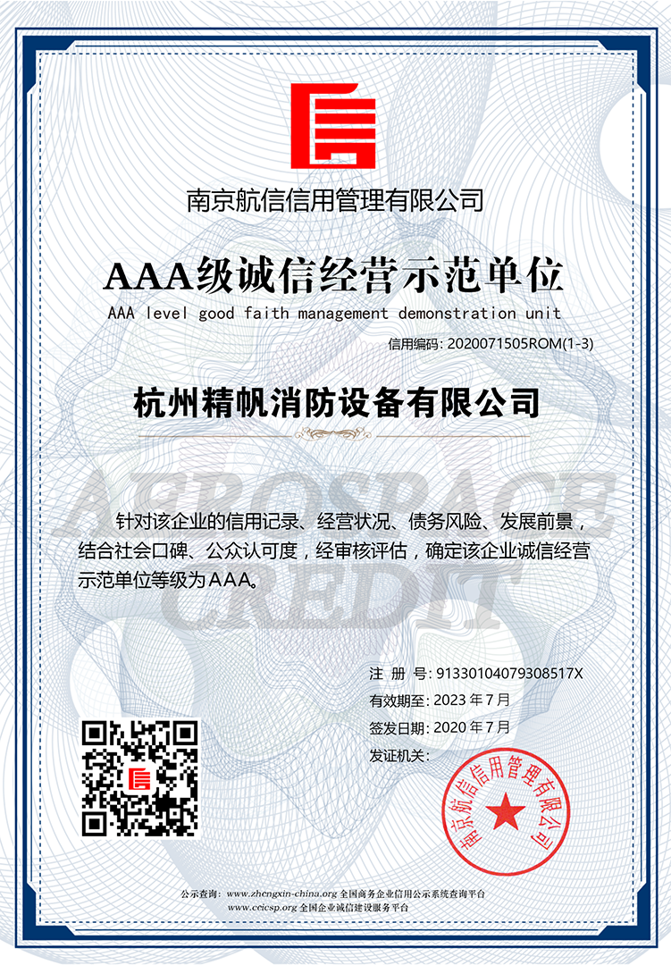AAA級(jí)誠(chéng)信經(jīng)營(yíng)示范單位