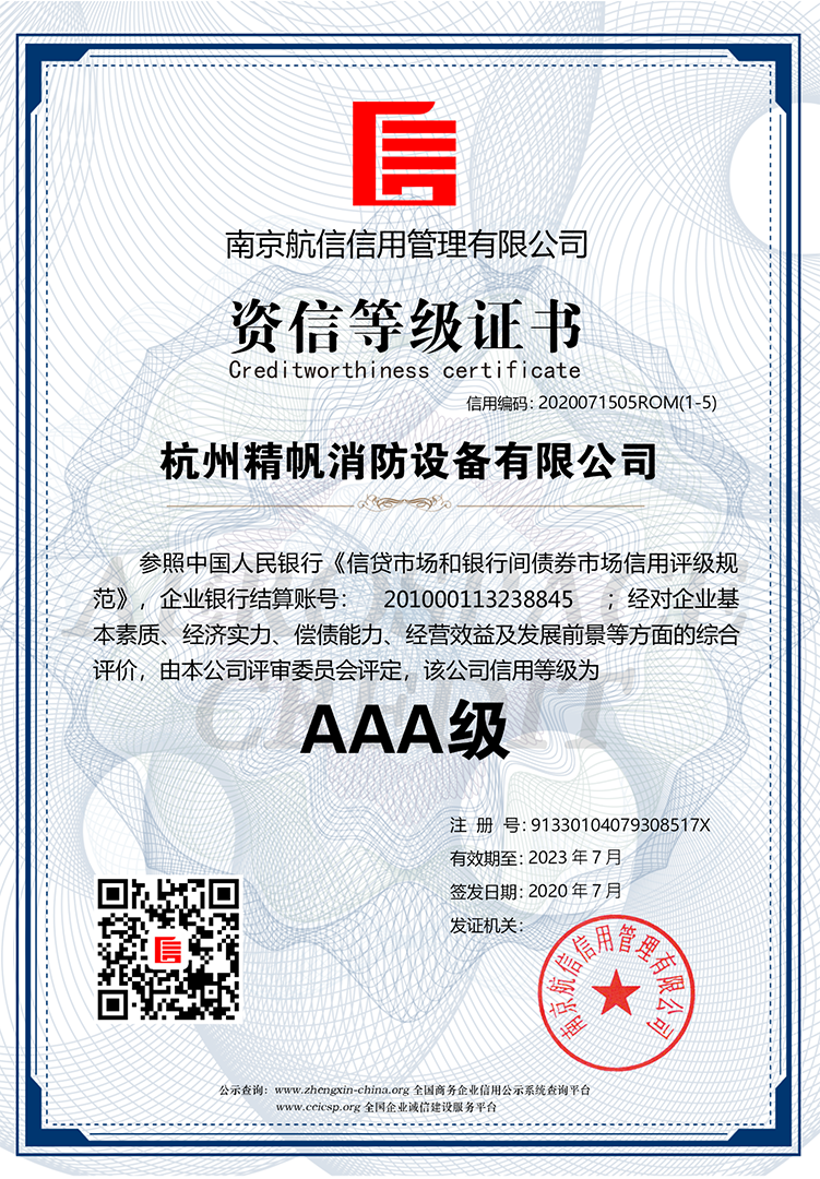 中國(guó)消防行業(yè)誠(chéng)信單位等級(jí)證書